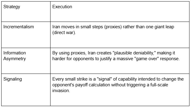 Iran’s Rationality: Survival of the regime is the ultimate payoff. Therefore, seeking a "deterrent" (nuclear or proxy-based) is a logical response to being surrounded by rivals.